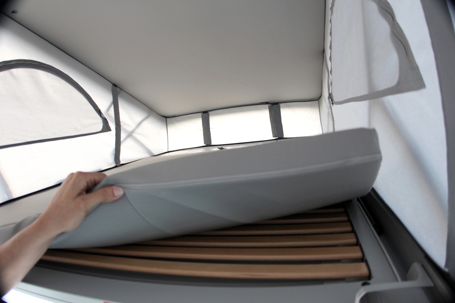 Situato sul tetto del veicolo si apre dall'interno. Mantiene il comfort di un grande letto senza occupare spazio nello spazio abitativo.