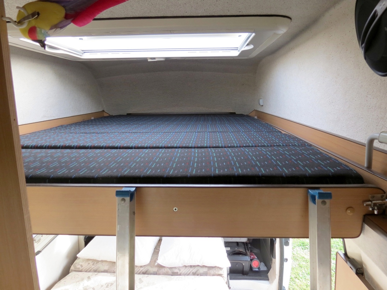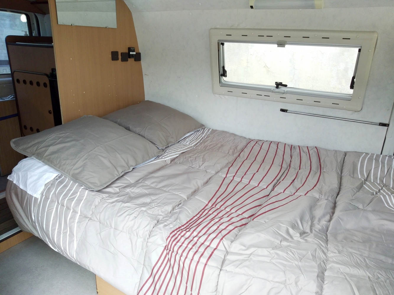 4 couchages : Lit principal banquette 130 X 190 + Lit 140 X 200 pour 2 enfants au dessus (Espace confine donc a eviter pour les claustro)