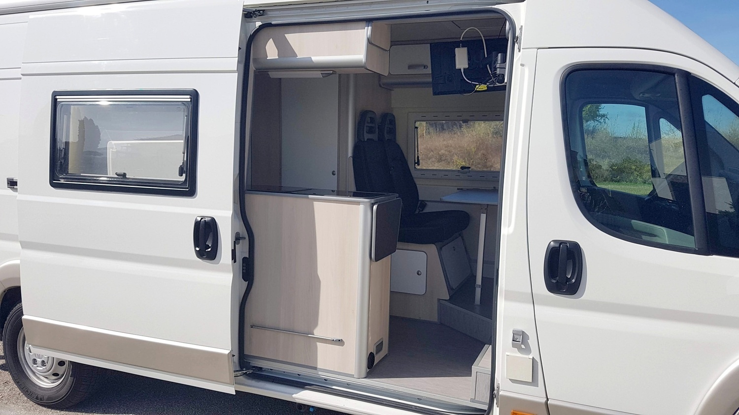 A Caravana é perfeita para umas ferias em família com duas crianças ou ate mesmo 4 adultos, quer no verão ou no inverno, pois possui aquecimento de parque, o que lhe permite funcionar mesmo com o motor parado.